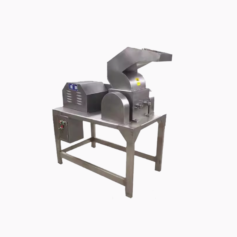 本机为卧式粉碎结构,物料由进料斗进入粉碎室,利用旋转刀与固定刀冲击、剪切而获得粉碎,经旋转离心力的作用,物料自动流向出口处。该机按“GMP”标准设计,整机全部采用不锈钢材料制造,结构简单,清洗方便、噪音低、目前是粗粉碎中最理想的设备。(可加除尘设备。料斗及进出料方式可根据客户要求作一定的尺寸改变,以适应不同的场地、工作方式不同等的需求。)