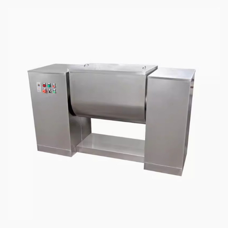 本机通过机械传动,使S式搅拌桨旋转,推动物料往复翻动,均匀混合,操作时采用电气控制,可设定混合时间,到时自动停机,电动倒料,从而提高每批物料的混合质量,达到高均匀度的混合。